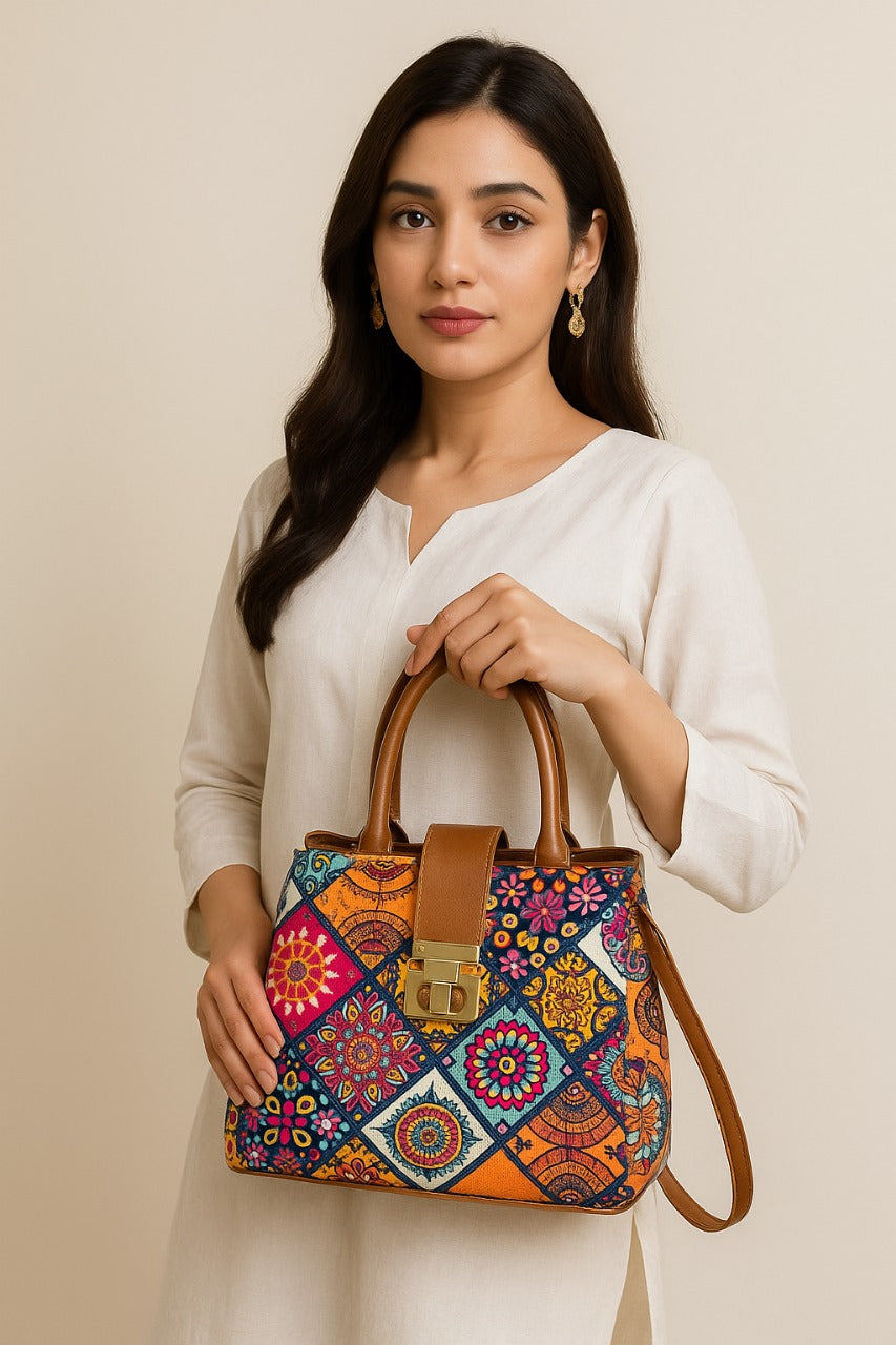 Elevate your style with the Boho Mosaic Hand Bag, featuring intricate mosaic patterns that blend artistry with functionality. Perfect for carrying essentials while adding a unique, handcrafted touch to any outfit.